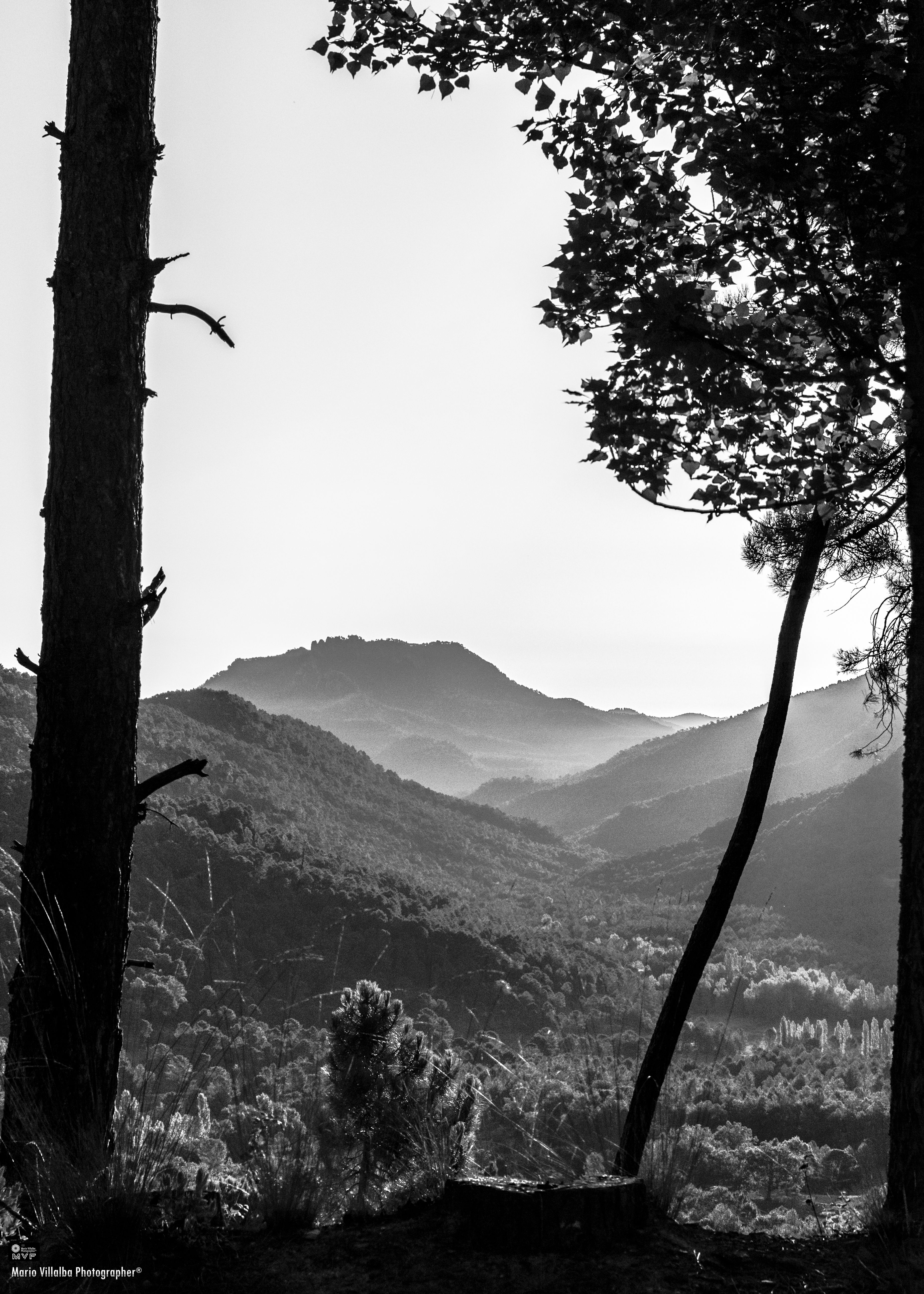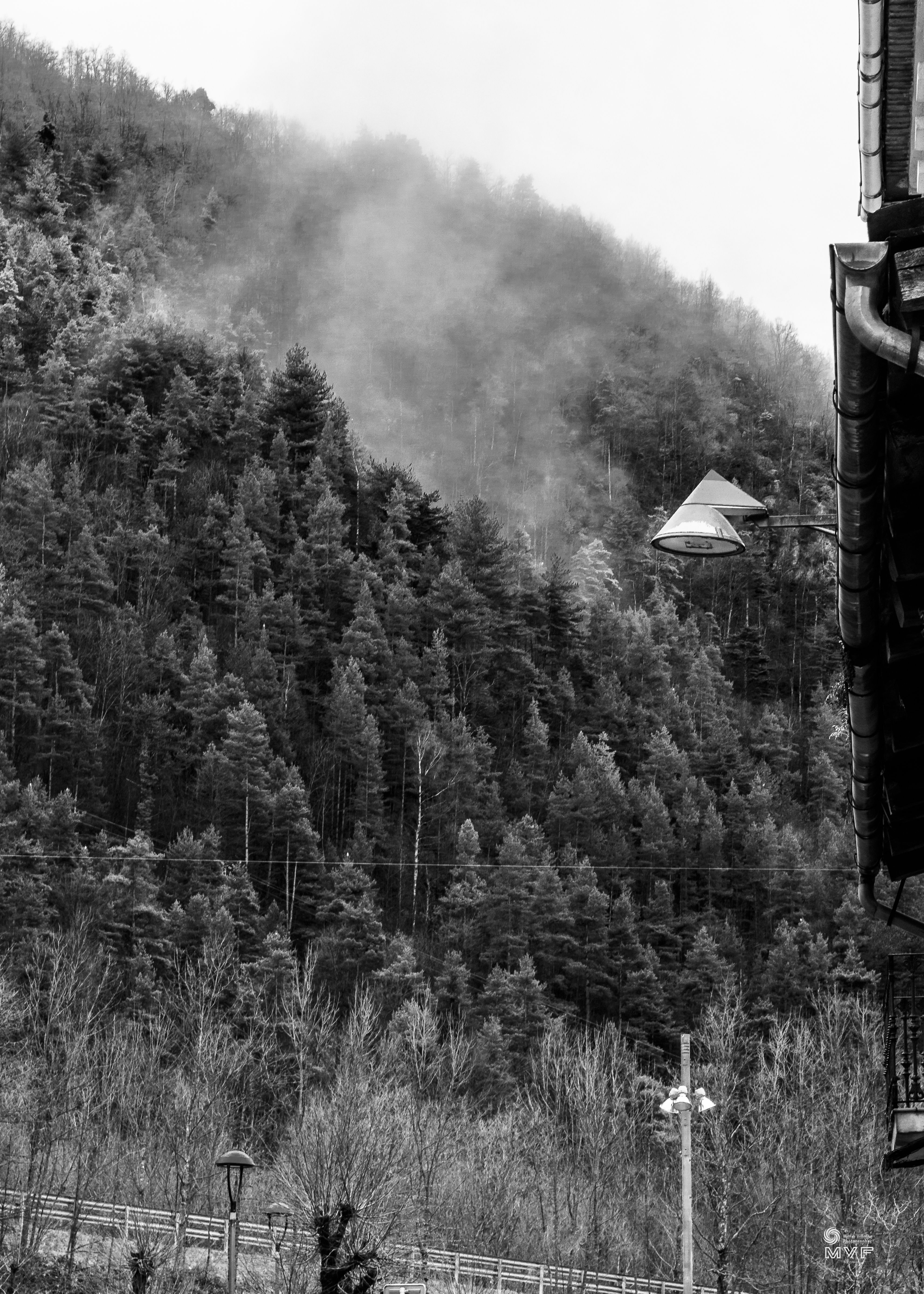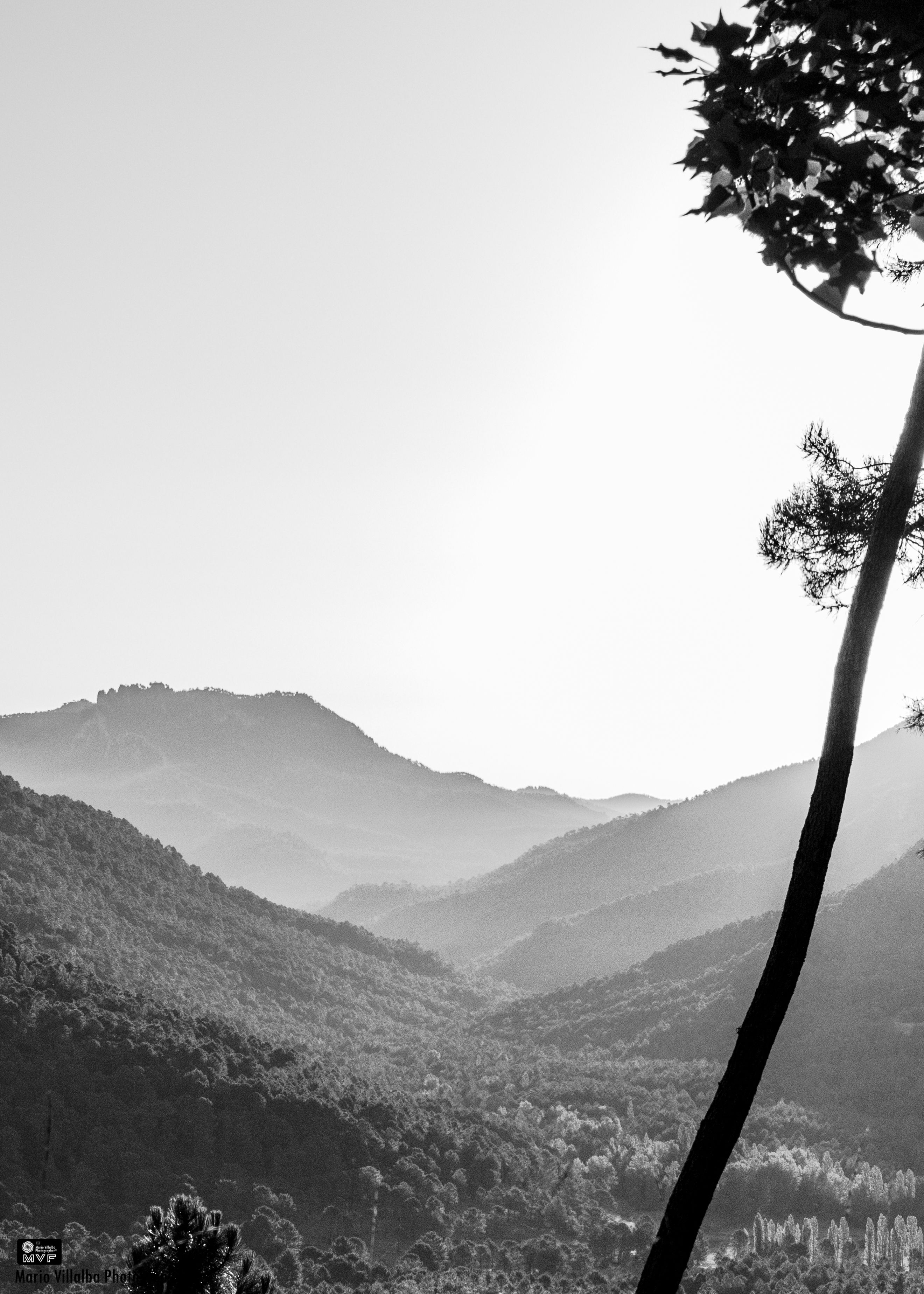 Parque natural de Los Calares del río Mundo, composición en B/N, peraltada, buscando un encuadre típico de litografía de bosque japonés.