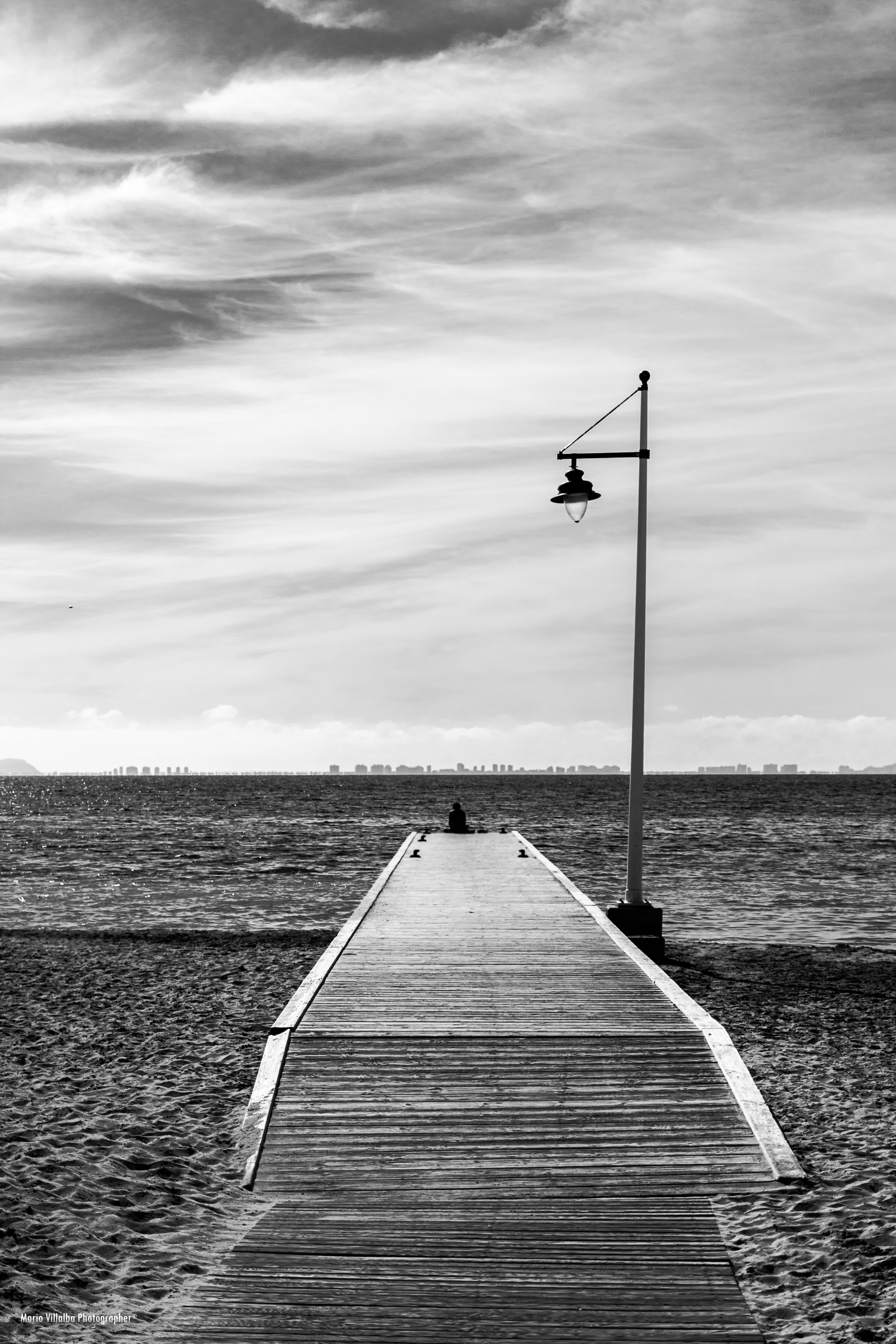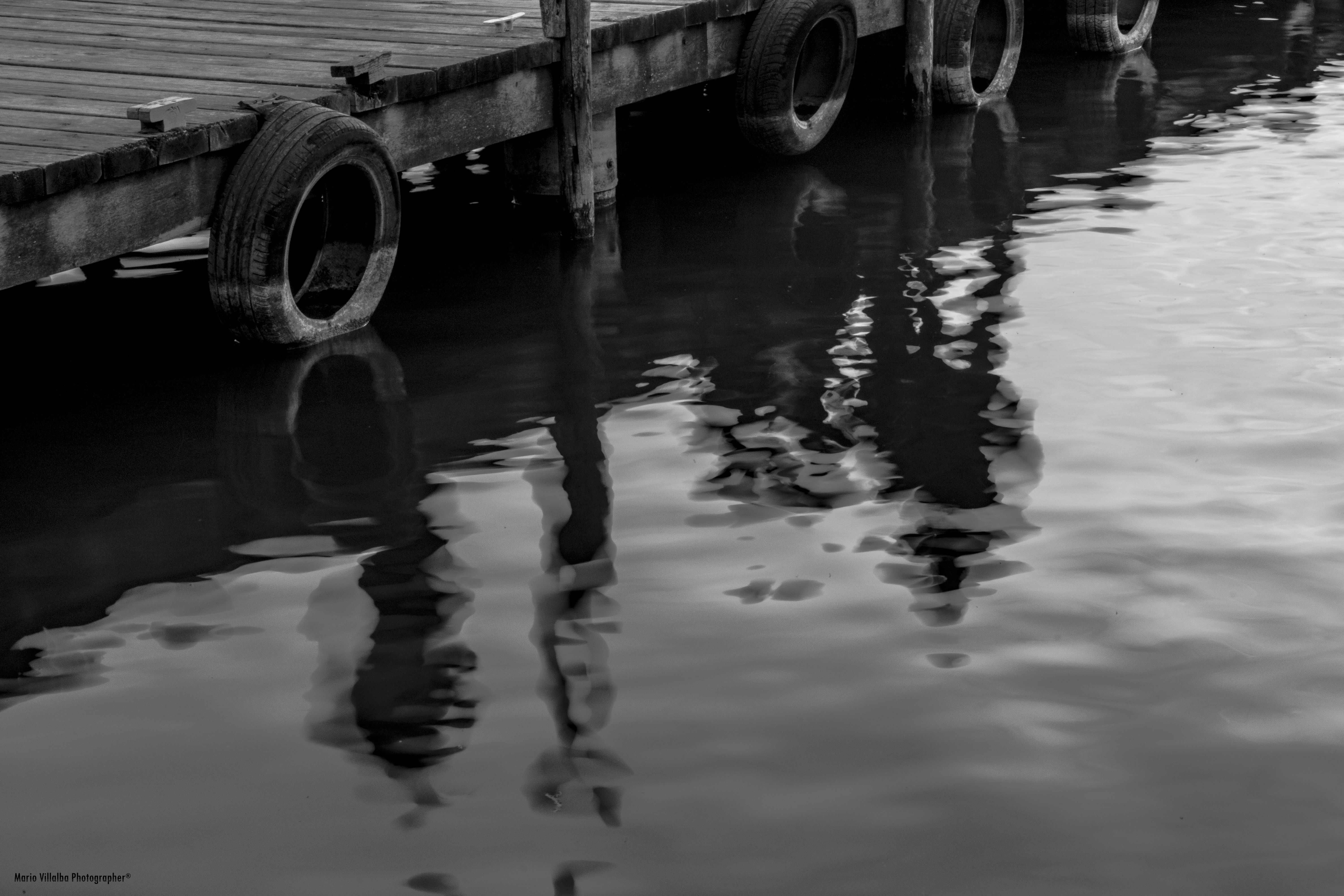 Pantalán de la Albufera recogiendo el reflejo de las personas que se encontraban arriba.
