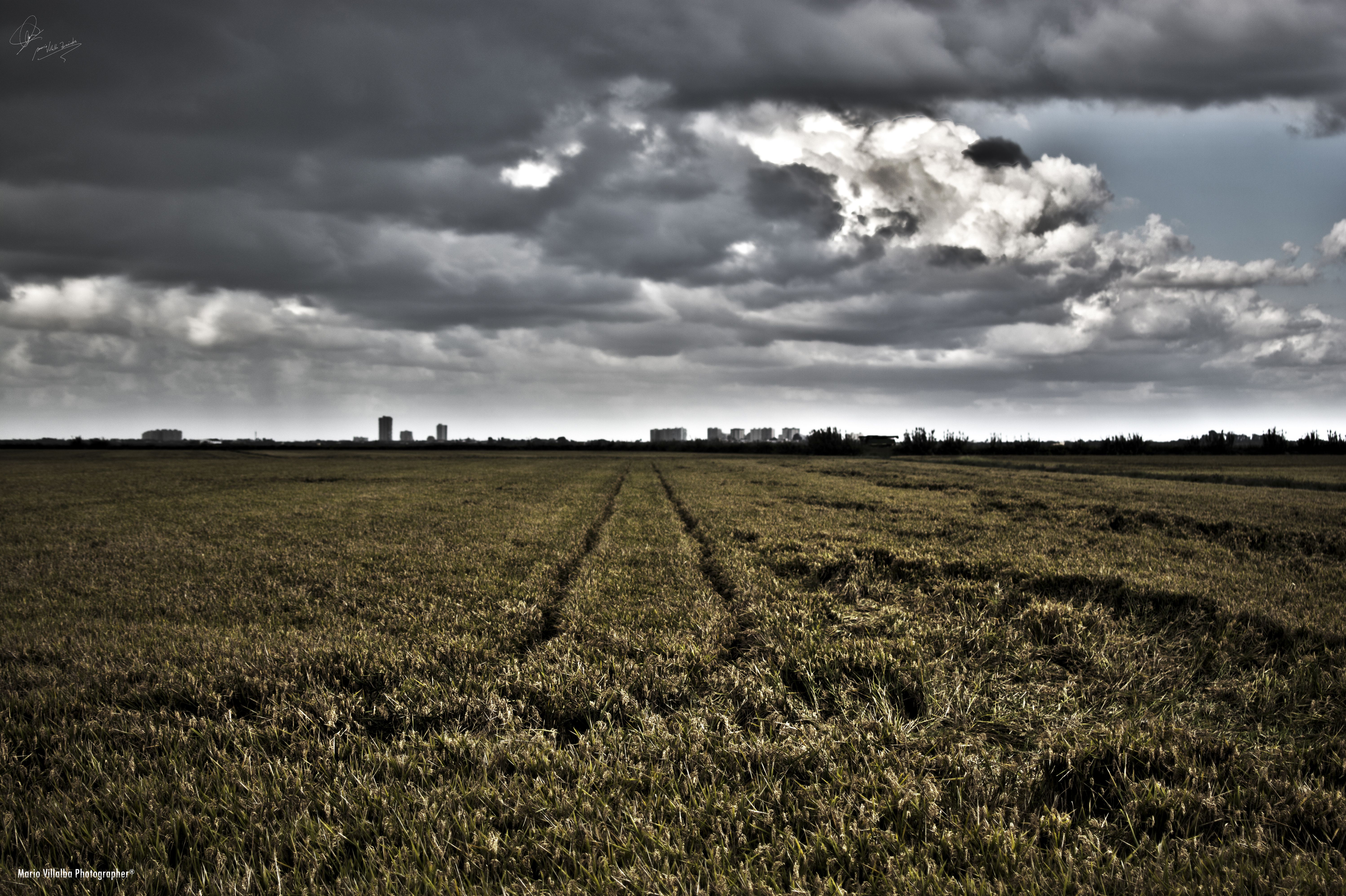 Campos de arroz II. Foto de los campos de arroz de Sueca, al fondo las edificaciones que se encuentran a pie de playa entre Sueca y Cullera.