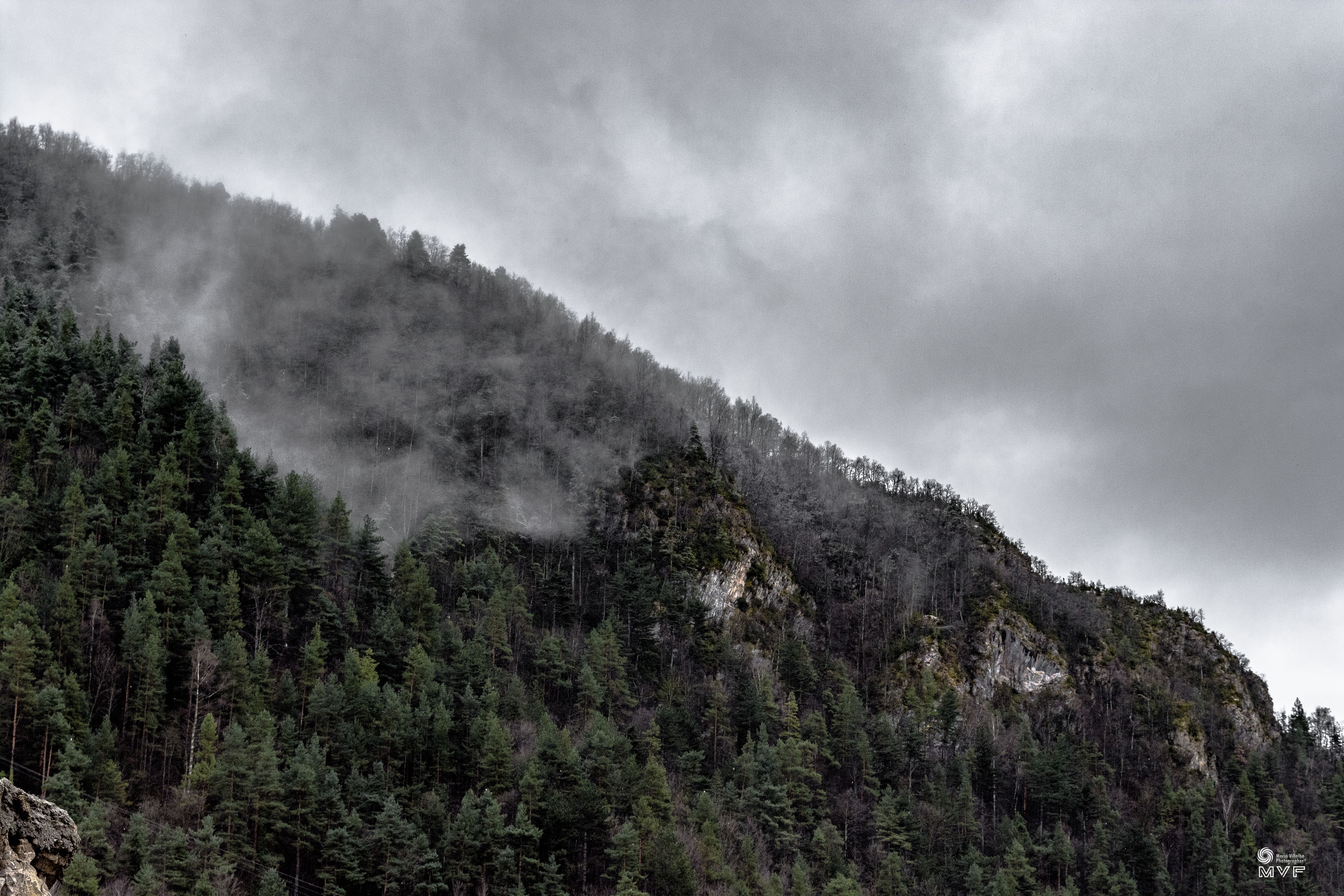 Usé una lente con filtro de DN polarizado, que al dejarlo entre dos valores creó dos zonas, una con el color natural de la escena, los verdes, y otra con una aberración cromática que cruza desde la diagonal superior izquierda hacia abajo, dando unos colores rojos que no existían en la imagen real.